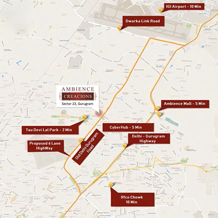 Ambience Creacions Sector 22 is ready to move into a society near Cyber City, Gurgaon. This project offers you 3,4 BHK Luxurious Apartments and Penthouses. Ambience Creations floor sizes range from 2,781 sq. ft. to a lavish 10,105 sq. ft., ensuring a perfect fit for every family.